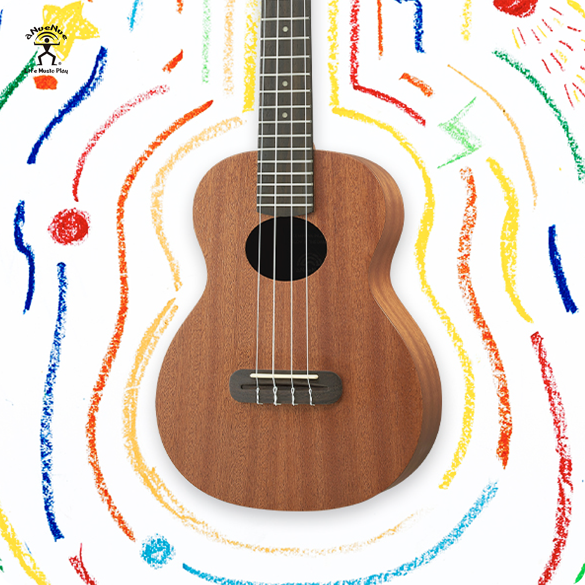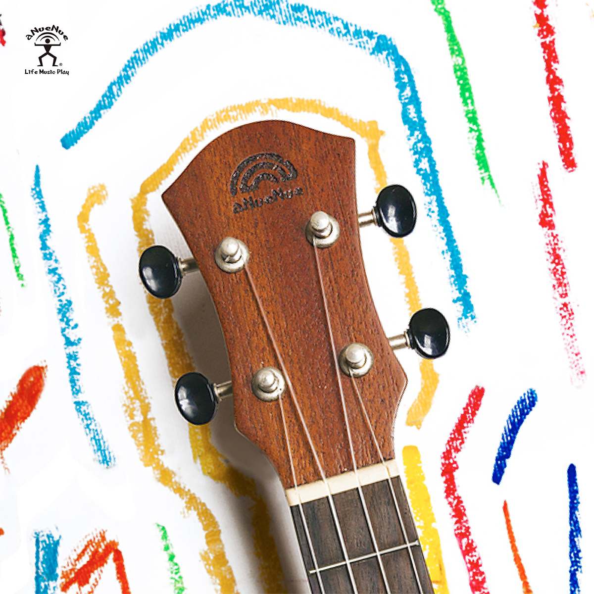 aNueNue於2017推出烏克麗麗副品牌“Rainbow小彩虹”,顯現活力,在尺寸、材質上提供多種選擇,舒適手感與親民的價格適合初學者與剛學樂器的孩子。設計上使用的特殊“Luminova夜光材質”,就是要讓你與眾不同。